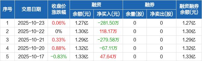 汉朔科技:融资净偿还281.5万元,融资余额1.27亿元(10-23)