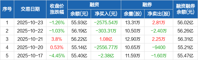 浪潮信息:融资净偿还2575.54万元,融资余额55.93亿元(10-23)