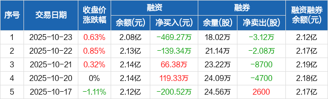 老板电器:融资净偿还469.27万元,融资余额2.08亿元(10-23)