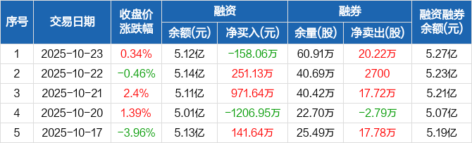伊之密:融资净偿还158.06万元,融资余额5.12亿元(10-23)