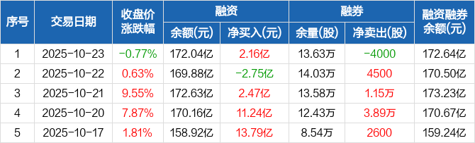 中际旭创:融资净买入2.16亿元,融资余额172.04亿元(10-23)