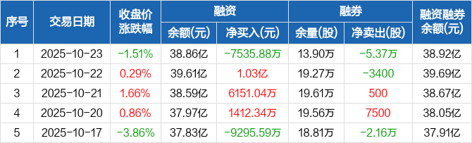 昆仑万维:融资净偿还7535.88万元,融资余额38.86亿元(10-23)