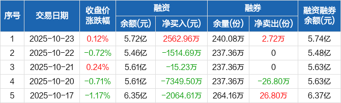 消费ETF:融资净买入2562.96万元,融资余额5.72亿元(10-23)