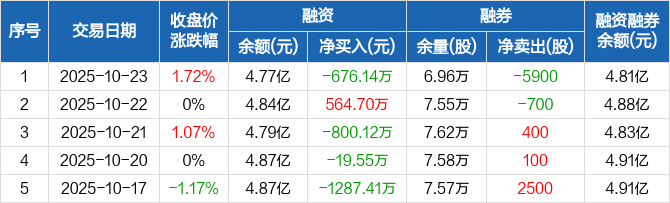 豪迈科技:融资净偿还676.14万元,融资余额4.77亿元(10-23)