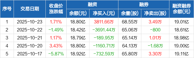 欣旺达:融资净买入3811.66万元,融资余额18.8亿元(10-23)
