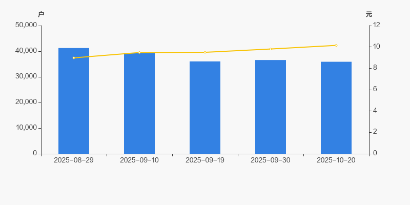 2025年8月29日至今,公司股东户数显著下降,区间跌幅为12.99%。2025年8月29日至2025年10月20日区间股价上涨13.03%。