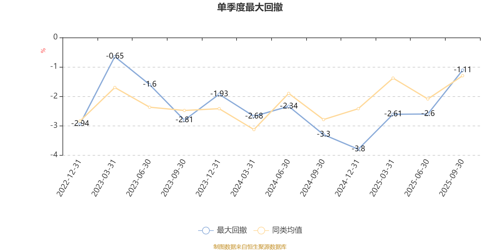 通过所选区间该基金净值增长率分位图,可以观察该基金与同类基金业绩比较情况。图为坐标原点到区间内某时点的净值增长率在同类基金中的分位数。