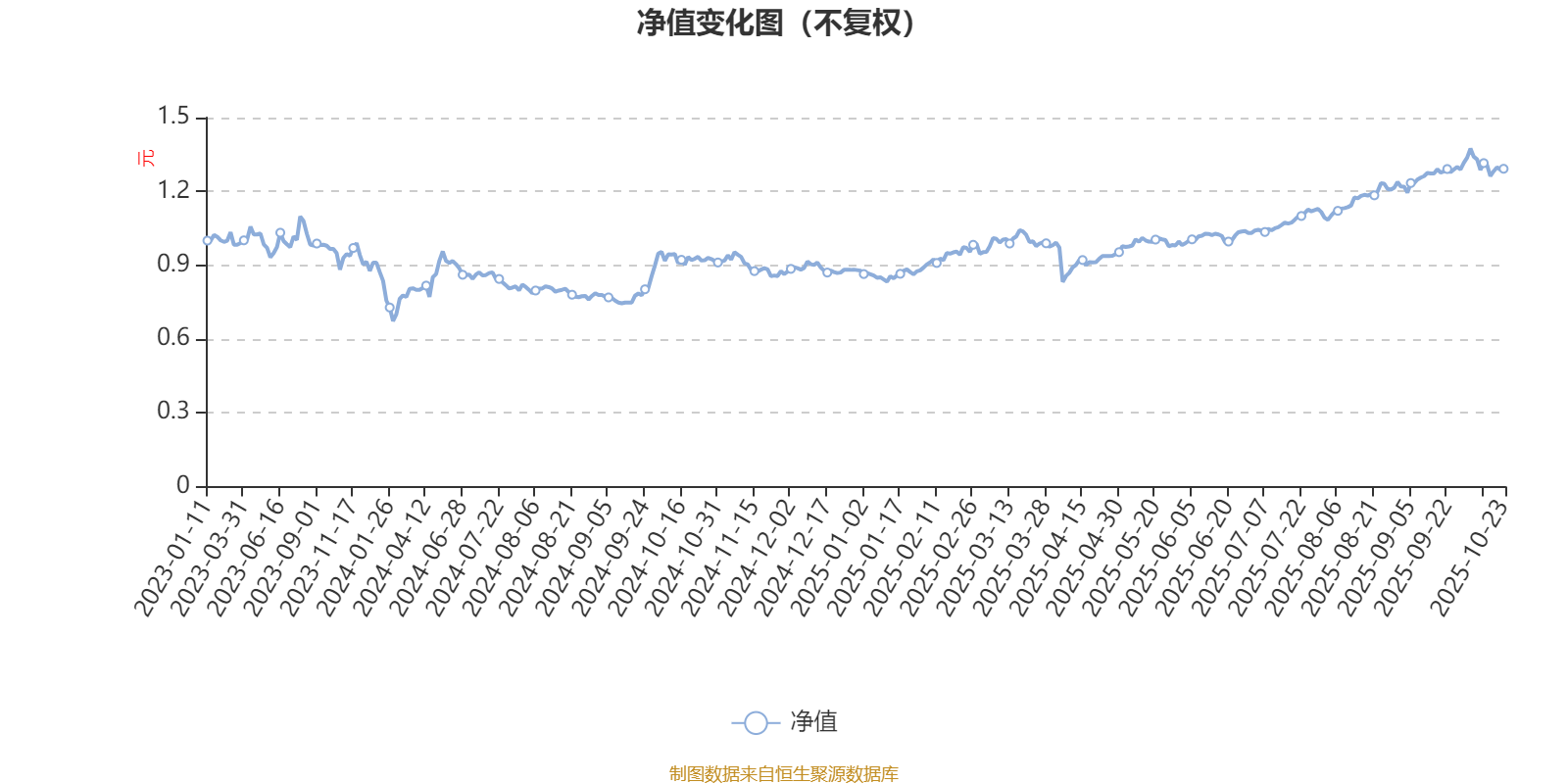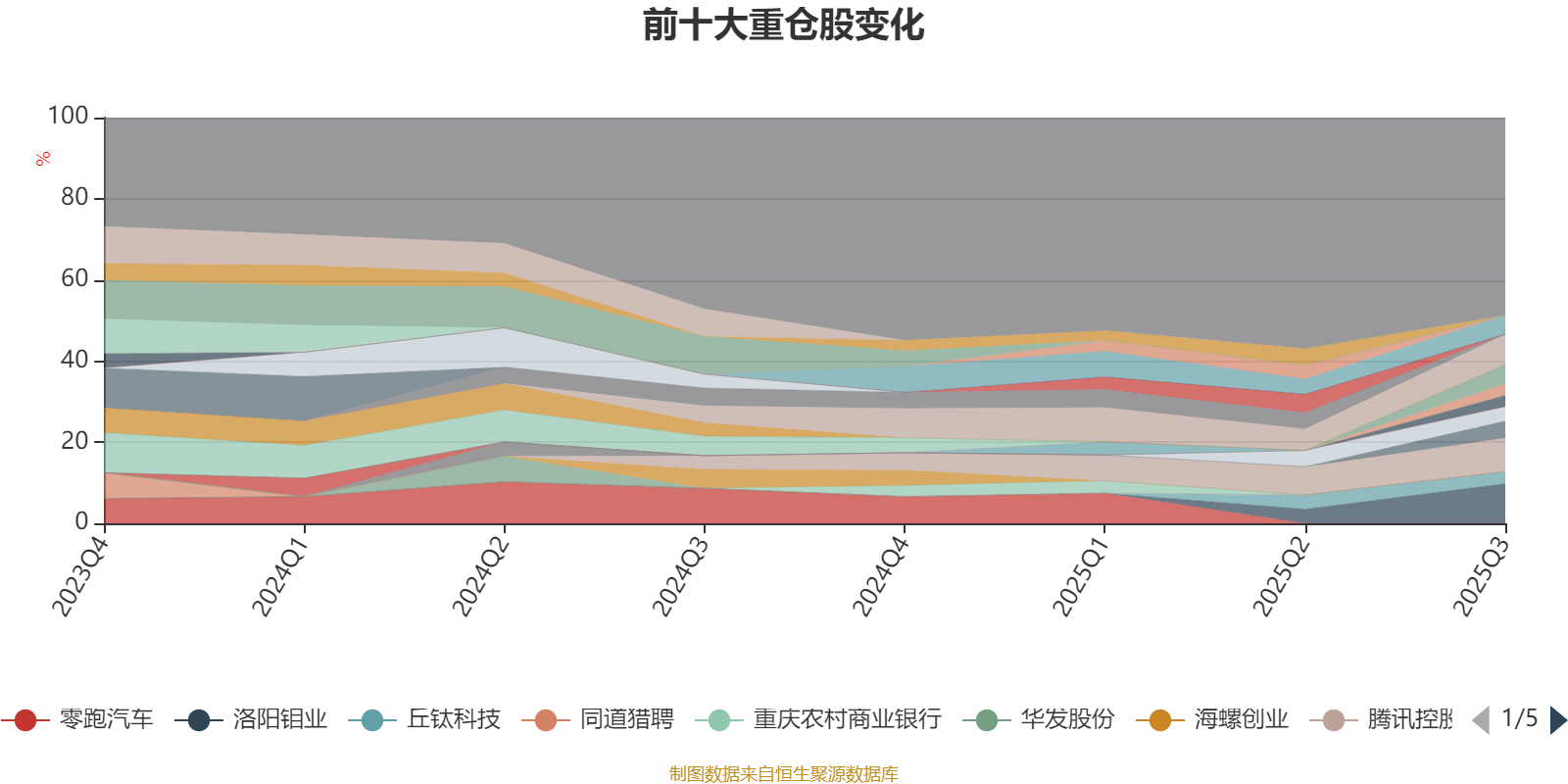 截至2025年三季度末,基金十大重仓股分别是洛阳钼业、腾讯控股、阿里巴巴-W、金风科技、名创优品、联想集团、香港交易所、丘钛科技、舜宇光学科技、中广核矿业。