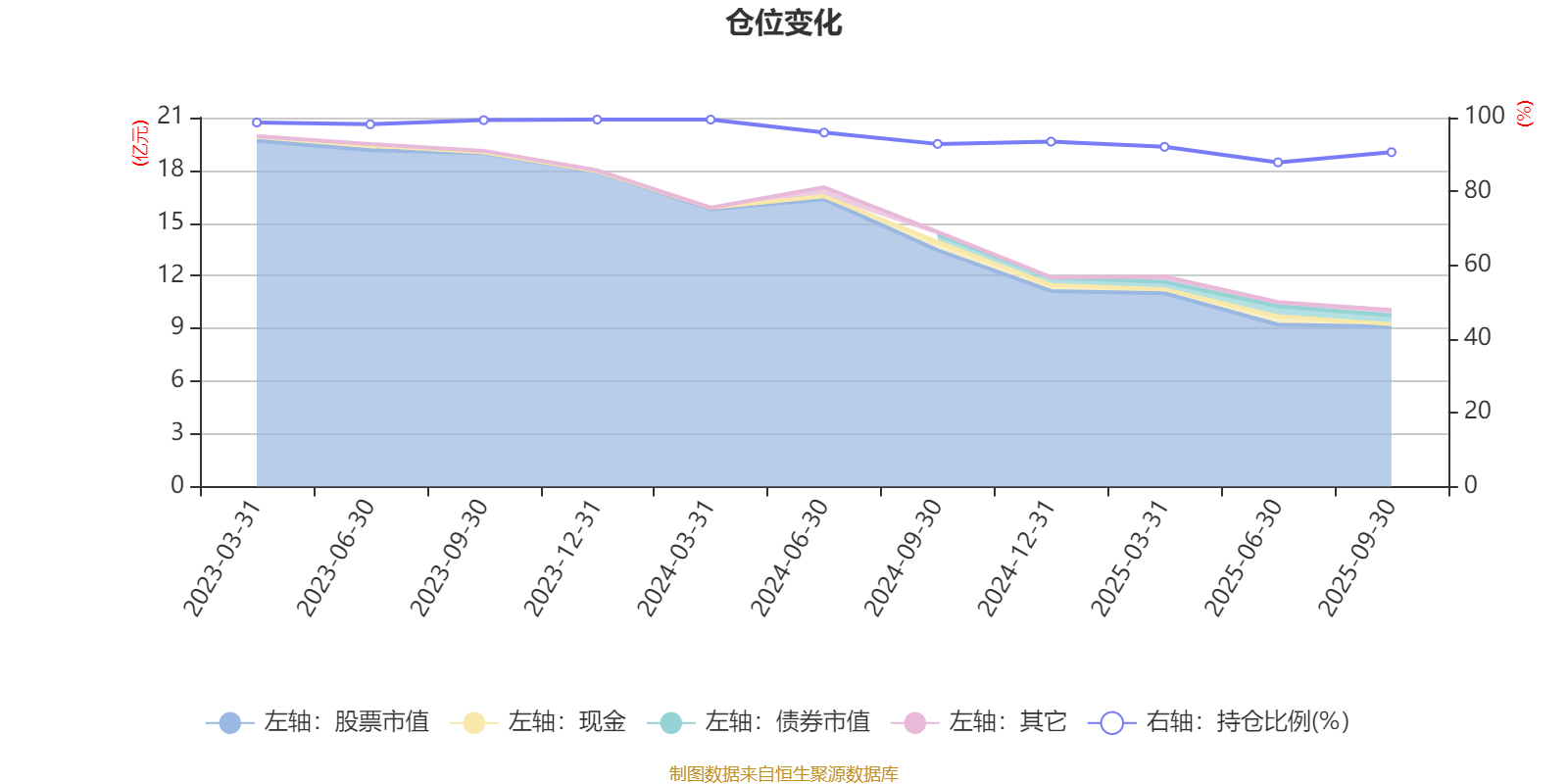 据定期报告数据统计,成立以来平均股票仓位为95.27%,同类平均为88.49%。2023年末基金达到99.48%的最高仓位,2025年上半年末最低,为87.87%。