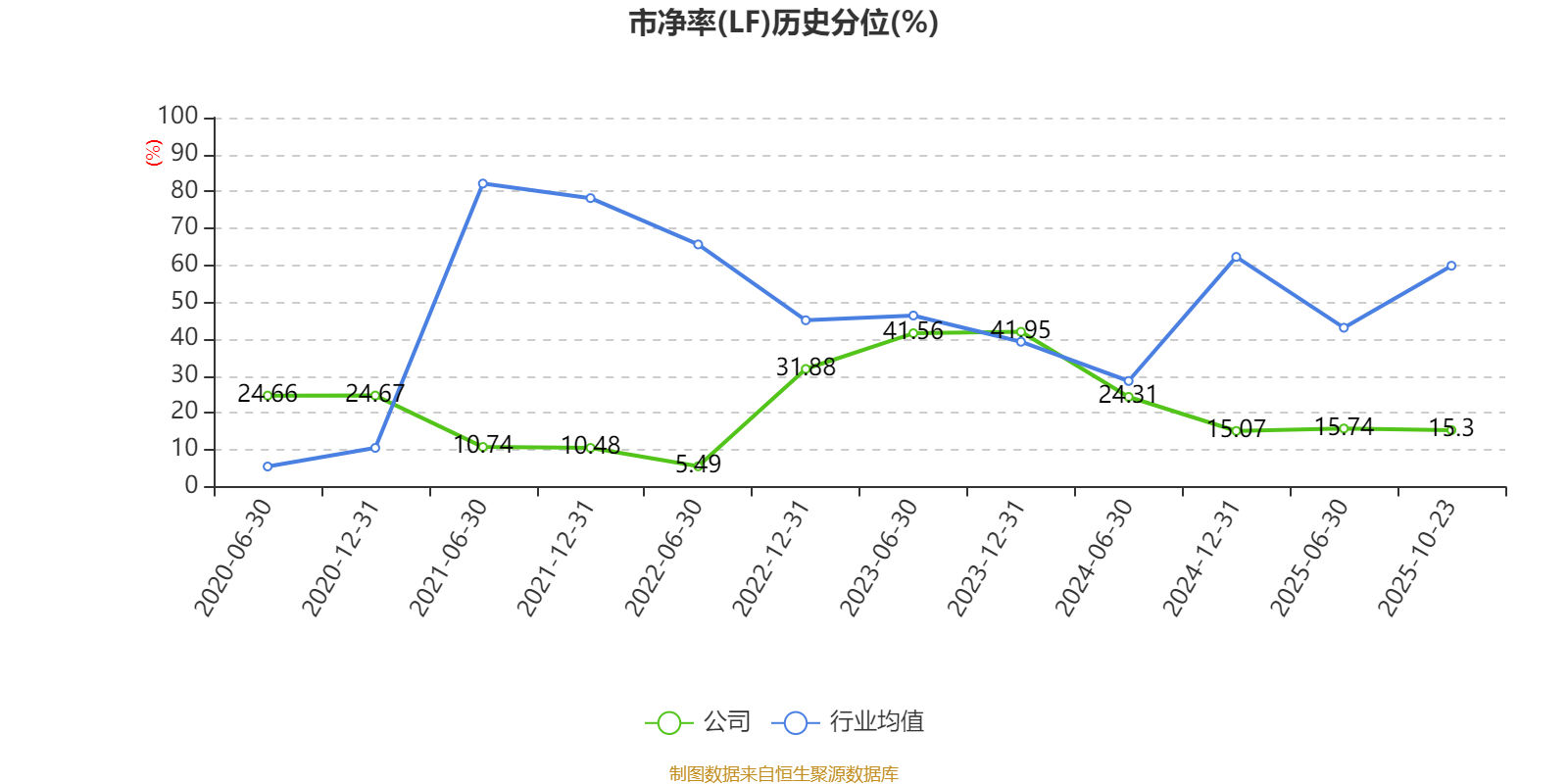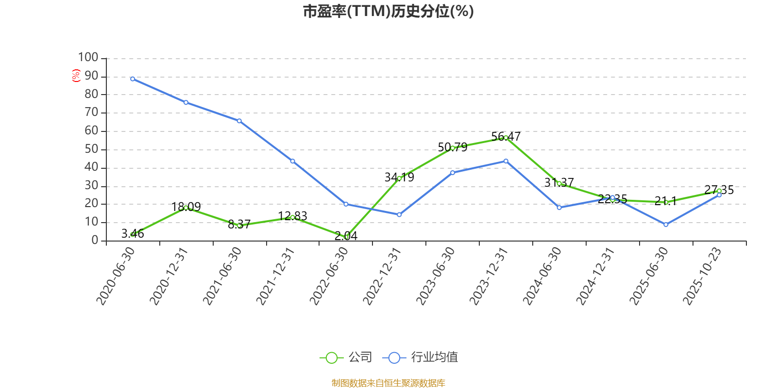 市盈率、市净率为负时,不显示当期分位数,会导致折线图中断。
