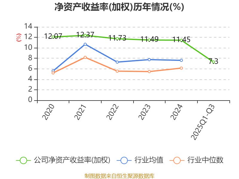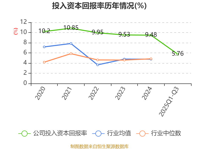 盈利能力方面, 2025年前三季度公司加权平均净资产收益率为7.3%,同比下降0.11个百分点。公司2025年前三季度投入资本回报率为5.76%,较上年同期下降0.75个百分点。