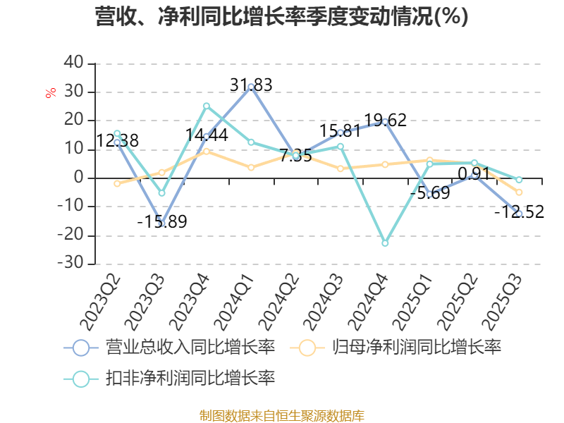资产重大变化方面,截至2025年三季度末,公司存货较上年末增加28.79%,占公司总资产比重上升4.9个百分点;固定资产较上年末减少1.3%,占公司总资产比重下降1.71个百分点;货币资金较上年末增加4.89%,占公司总资产比重下降1.17个百分点;交易性金融资产合计较上年末减少13.25%,占公司总资产比重下降1.1个百分点。