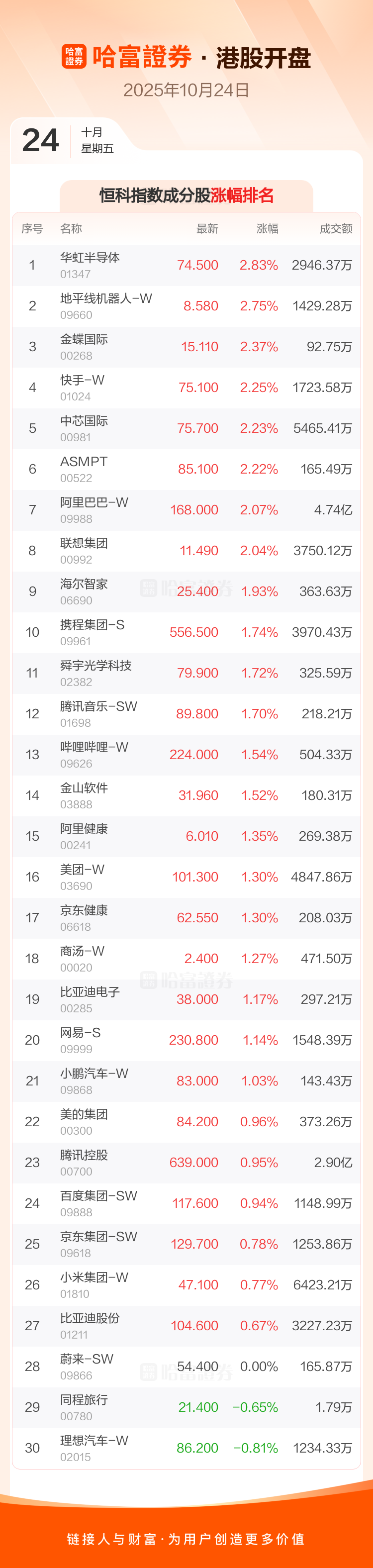 港股开盘:恒指高开0.81% 快手-W领涨成分股