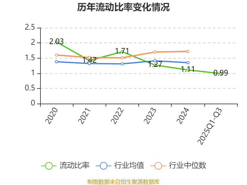 2025年前三季度,公司流动比率为0.99,速动比率为0.07。