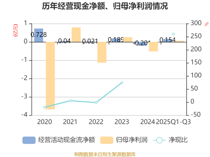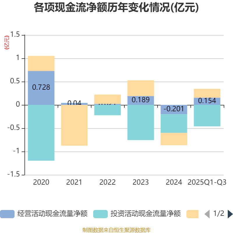 2025年前三季度,公司经营活动现金流净额为1541.31万元,同比增加2567.26万元;筹资活动现金流净额1902.01万元,同比减少49.75万元;投资活动现金流净额-4608.16万元,上年同期为-8898.59万元。