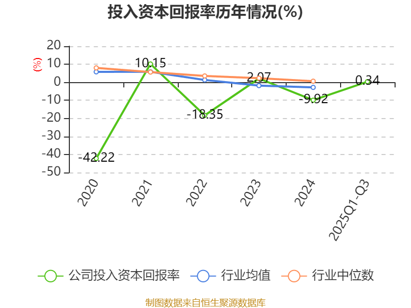 盈利能力方面, 2025年前三季度公司加权平均净资产收益率为1.13%,同比上升6.2个百分点。公司2025年前三季度投入资本回报率为0.34%,较上年同期上升5.98个百分点。