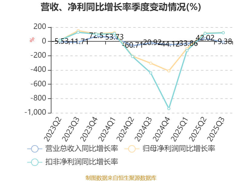 资产重大变化方面,截至2025年三季度末,公司其他非流动金融资产较上年末增加58.98%,占公司总资产比重上升3.97个百分点;应收票据及应收账款较上年末减少19.52%,占公司总资产比重下降3.69个百分点;存货较上年末增加32.3%,占公司总资产比重上升2.34个百分点;货币资金较上年末减少3.24%,占公司总资产比重下降1.38个百分点。
