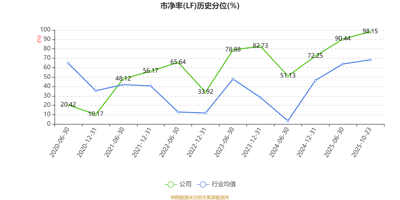 市盈率、市净率为负时,不显示当期分位数,会导致折线图中断。