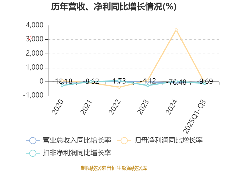 资产重大变化方面,截至2025年三季度末,公司固定资产较上年末增加5.37%,占公司总资产比重上升3.52个百分点;在建工程合计较上年末减少38.5%,占公司总资产比重下降2.96个百分点;货币资金较上年末增加19.88%,占公司总资产比重上升1.83个百分点;其他应收款(含利息和股利)较上年末减少79.61%,占公司总资产比重下降1.03个百分点。