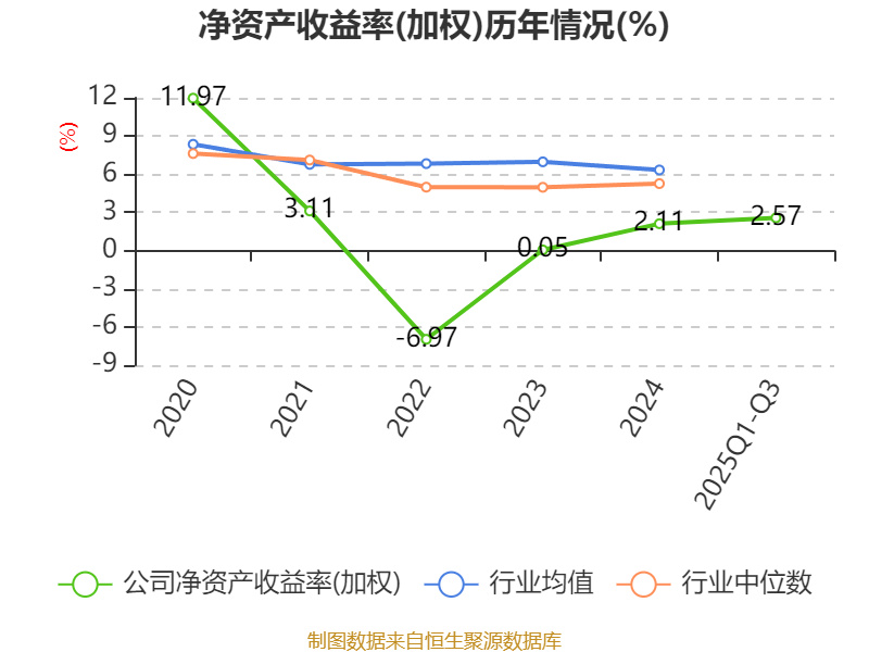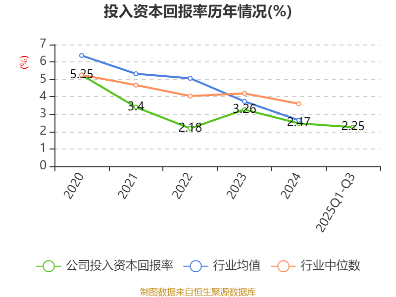 盈利能力方面, 2025年前三季度公司加权平均净资产收益率为2.57%,同比下降11.53个百分点。公司2025年前三季度投入资本回报率为2.25%,较上年同期下降2.49个百分点。