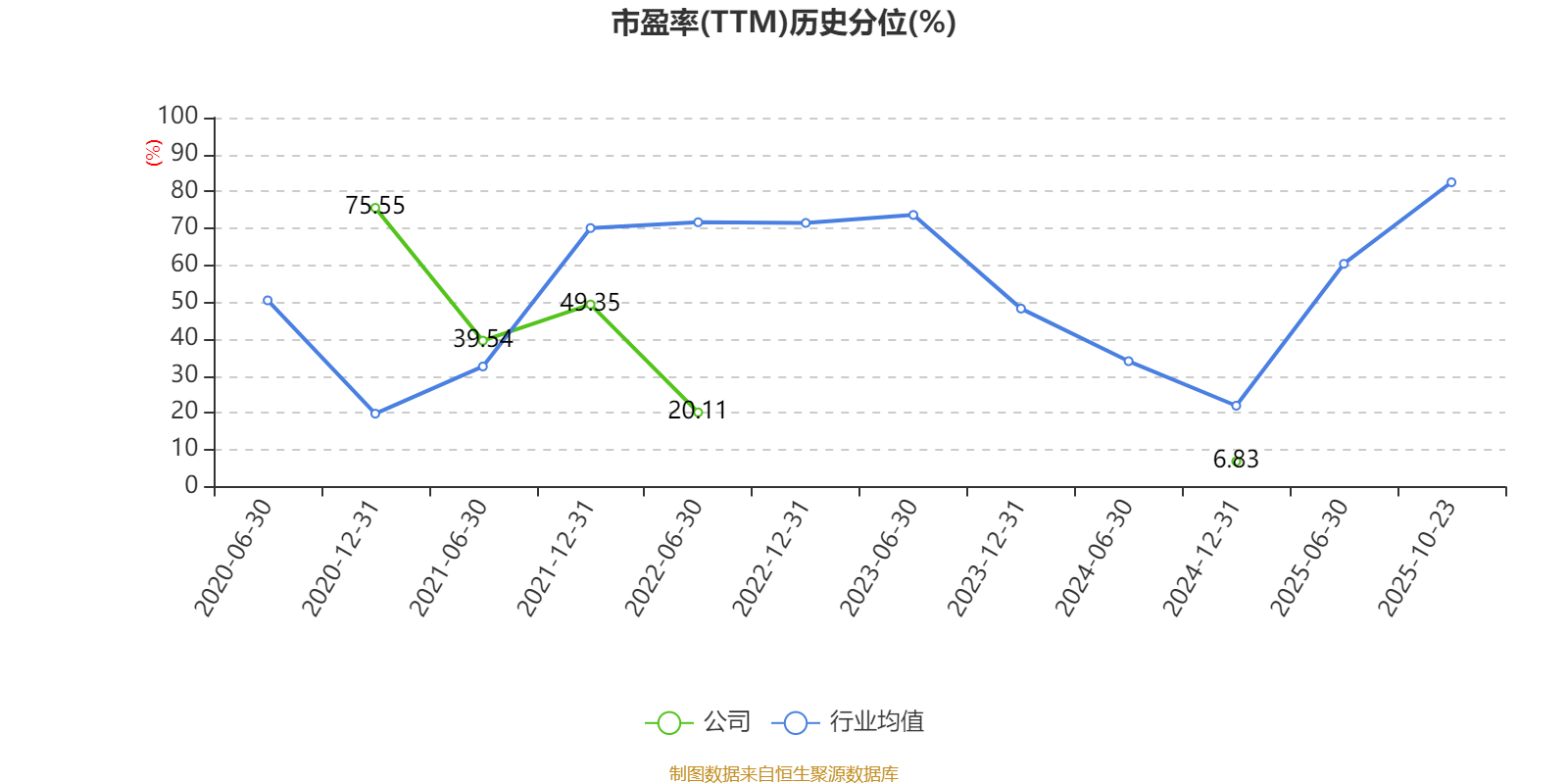 市盈率、市净率为负时,不显示当期分位数,会导致折线图中断。