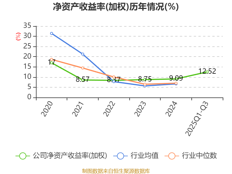 盈利能力方面, 2025年前三季度公司加权平均净资产收益率为12.52%,同比上升5.14个百分点。公司2025年前三季度投入资本回报率为11.95%,较上年同期上升4.87个百分点。