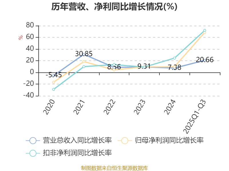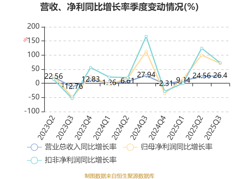 资产重大变化方面,截至2025年三季度末,公司交易性金融资产合计较上年末减少22.69%,占公司总资产比重下降14.09个百分点;在建工程合计较上年末增加95.08%,占公司总资产比重上升5.77个百分点;货币资金较上年末增加47.72%,占公司总资产比重上升3.95个百分点;其他非流动金融资产较上年末增加78.69%,占公司总资产比重上升2.62个百分点。