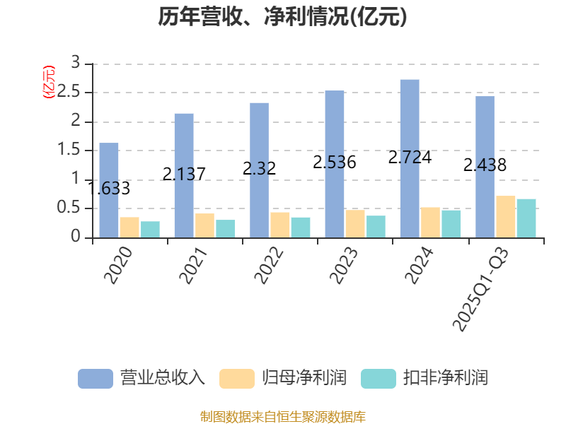 2025年前三季度,公司流动比率为6.35,速动比率为5.74。