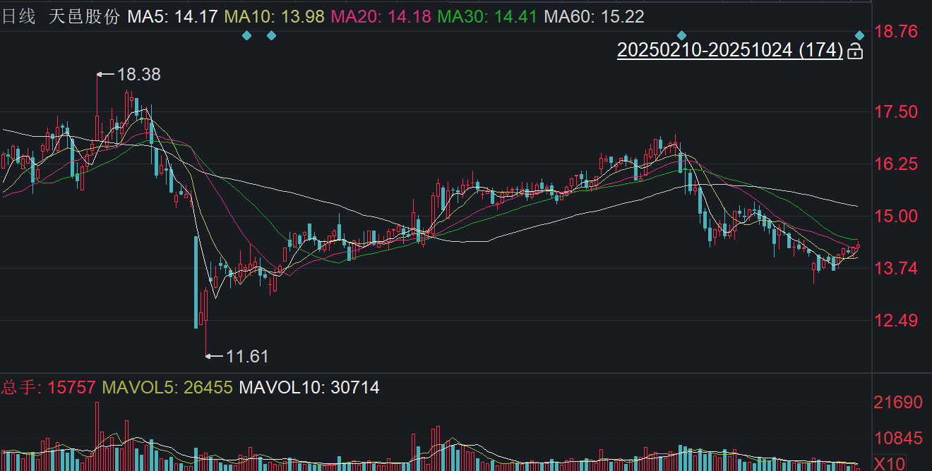 二级市场上,截至24日10点50分,天邑股份上涨0.49%报14.30元/股,总市值约38.76亿元,今年来公司股价累计下跌约两成。