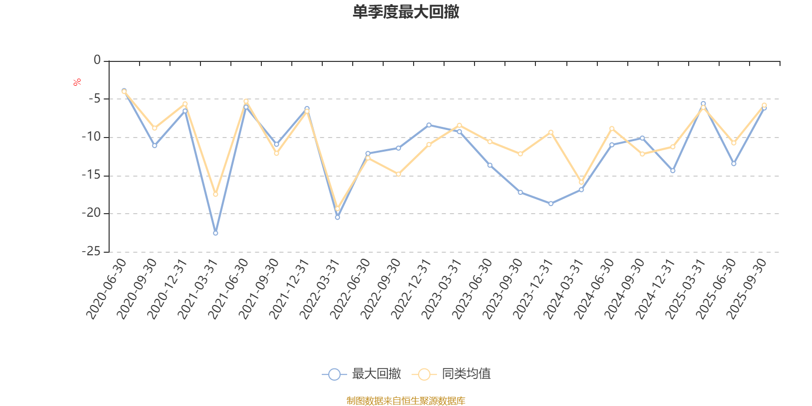 通过所选区间该基金净值增长率分位图,可以观察该基金与同类基金业绩比较情况。图为坐标原点到区间内某时点的净值增长率在同类基金中的分位数。