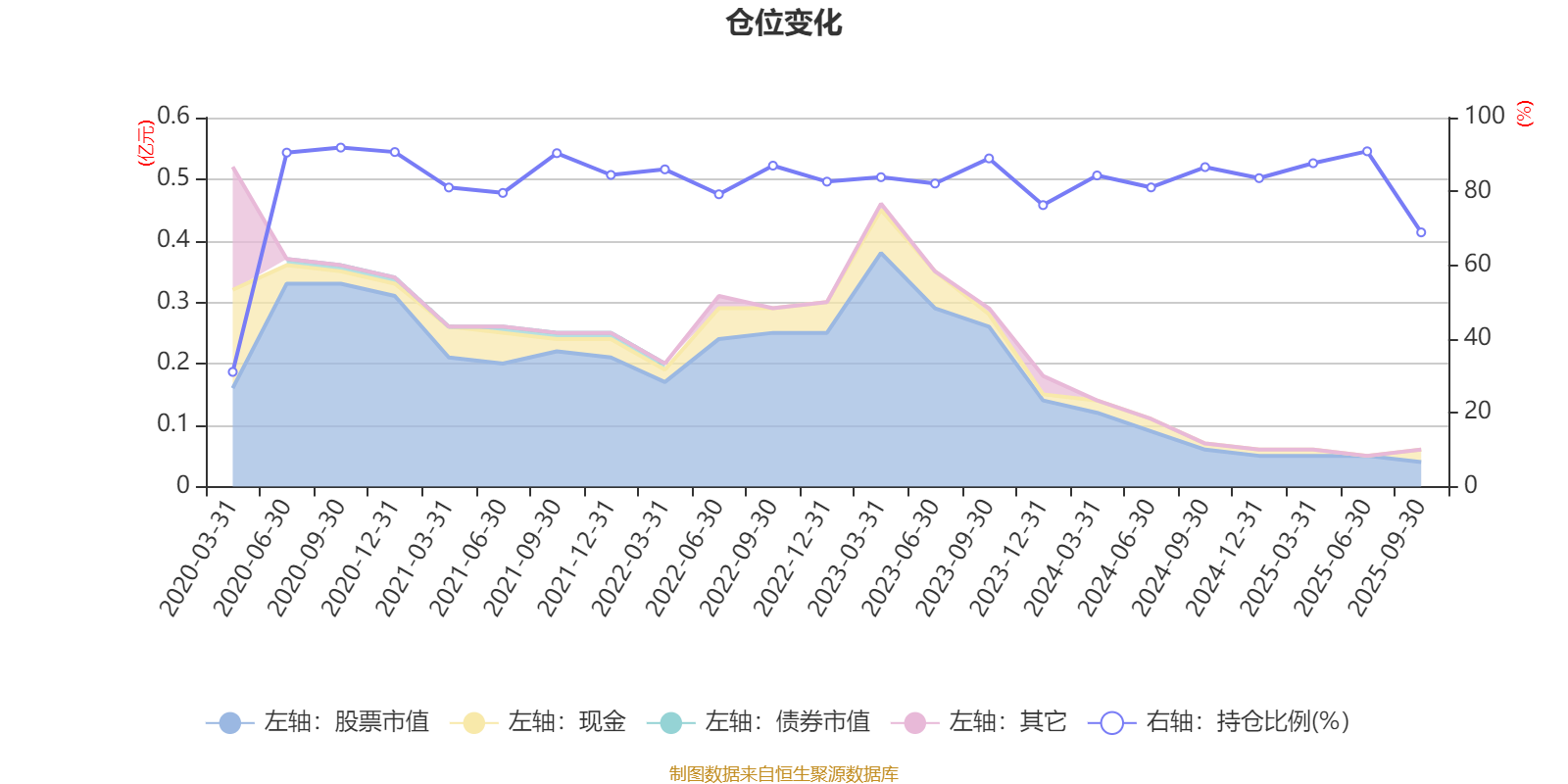 据定期报告数据统计,近三年平均股票仓位为83.07%,同类平均为83.37%。2020年三季度末基金达到91.87%的最高仓位,2020年一季度末最低,为31.07%。