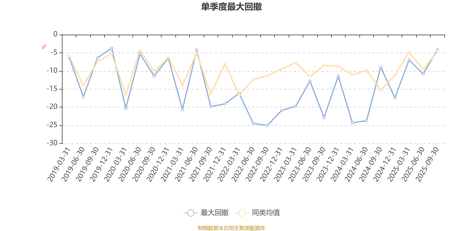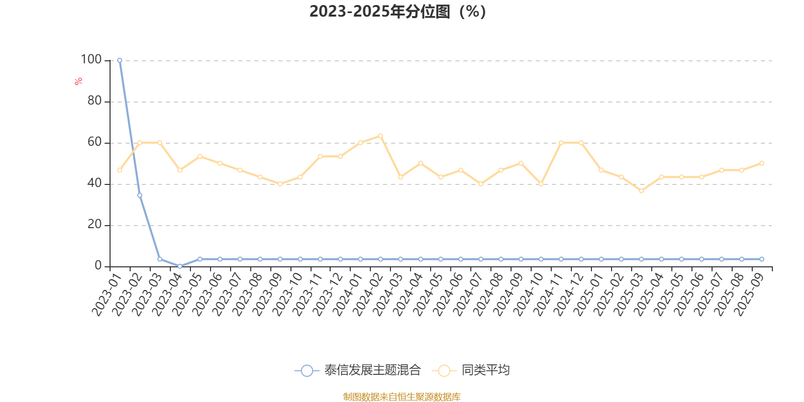 通过所选区间该基金净值增长率分位图,可以观察该基金与同类基金业绩比较情况。图为坐标原点到区间内某时点的净值增长率在同类基金中的分位数。