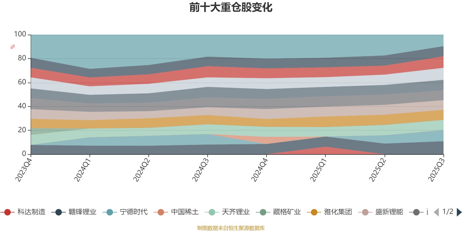 该基金持股集中度较高,且持股标的较为稳定,近2年前十大重仓股集中度长期超过60%。截至2025年三季度末,基金十大重仓股分别是赣锋锂业、永兴材料、天华新能、宁德时代、中矿资源、天齐锂业、融捷股份、雅化集团、西藏矿业、盛新锂能。