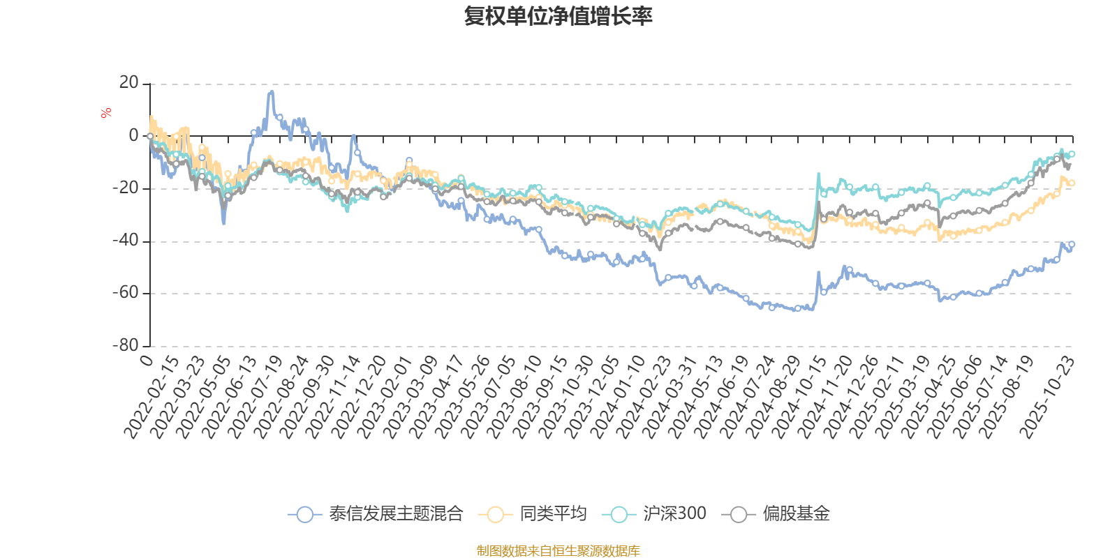 截至10月23日,泰信发展主题混合近三个月复权单位净值增长率为25.41%,位于同类可比基金9/49;近半年复权单位净值增长率为51.54%,位于同类可比基金5/49;近一年复权单位净值增长率为36.44%,位于同类可比基金16/42;近三年复权单位净值增长率为-31.59%,位于同类可比基金27/29。