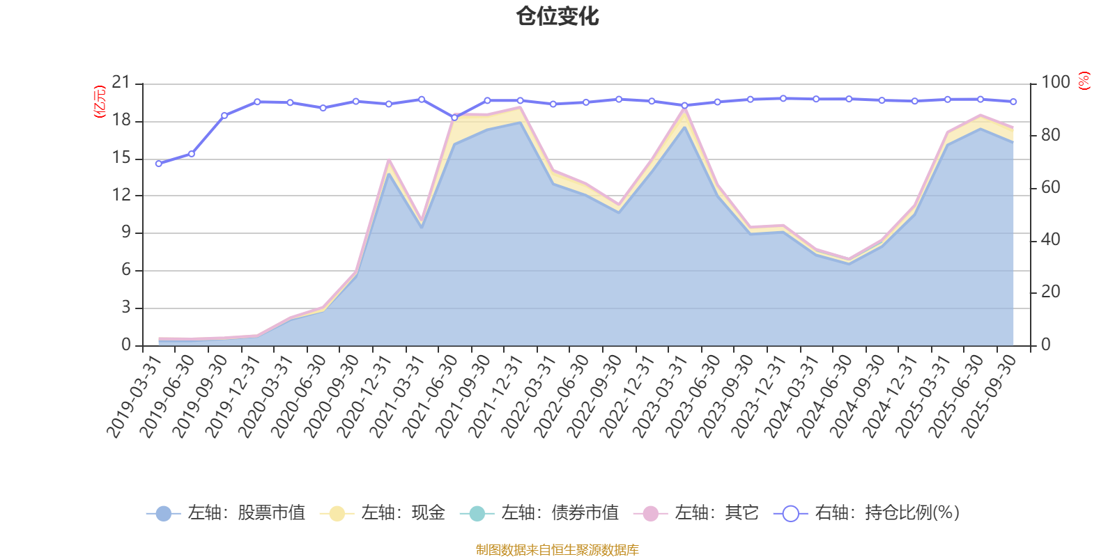 据定期报告数据统计,近三年平均股票仓位为93.54%,同类平均为86.7%。2023年末基金达到94.34%的最高仓位,2019年一季度末最低,为69.45%。