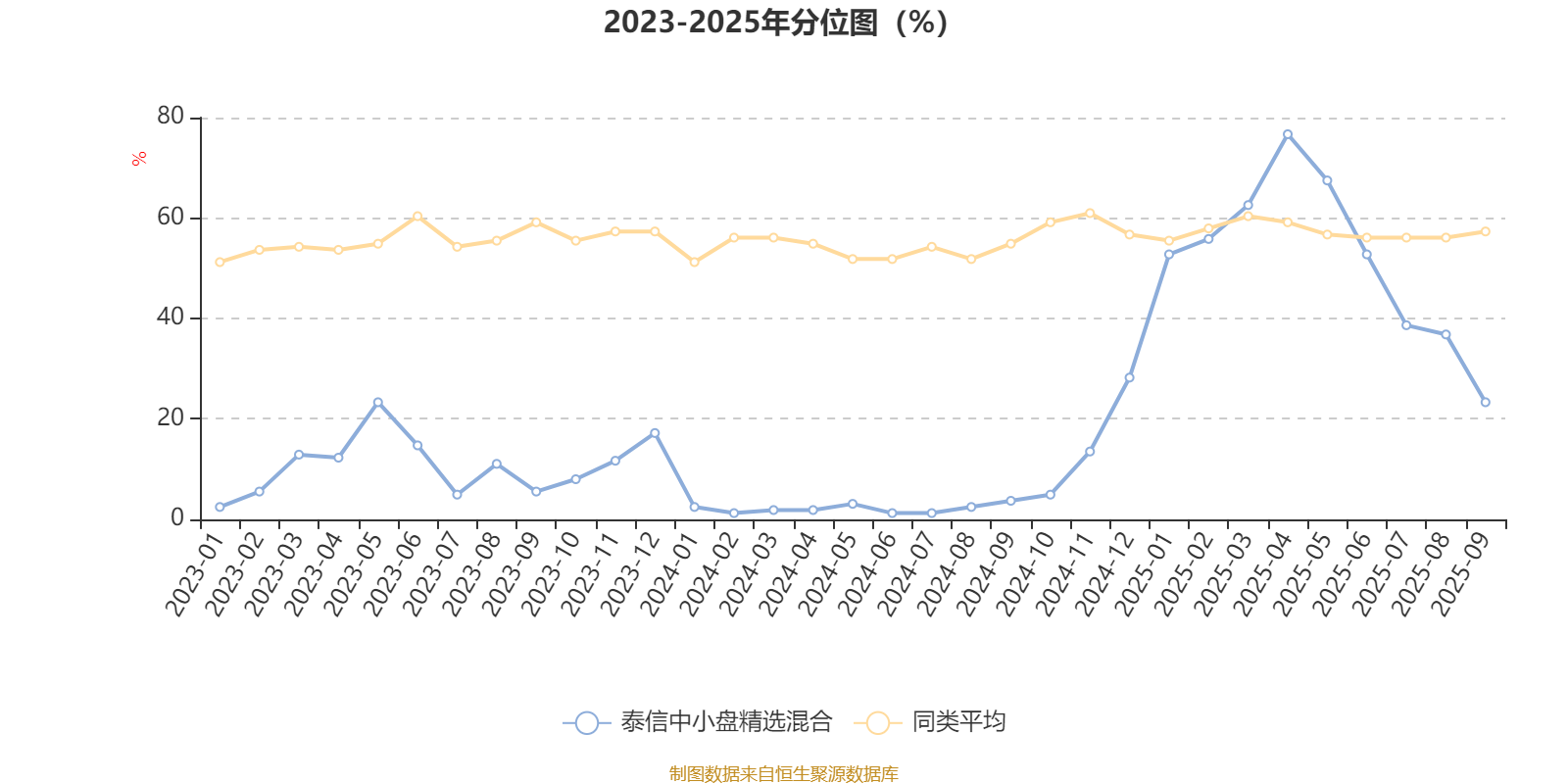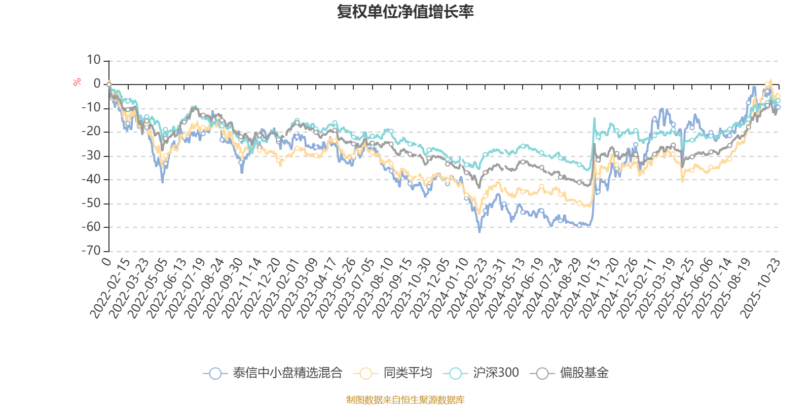 截至10月23日,泰信中小盘精选混合近三个月复权单位净值增长率为13.76%,位于同类可比基金195/229;近半年复权单位净值增长率为7.22%,位于同类可比基金225/229;近一年复权单位净值增长率为53.18%,位于同类可比基金70/213;近三年复权单位净值增长率为28.51%,位于同类可比基金93/158。