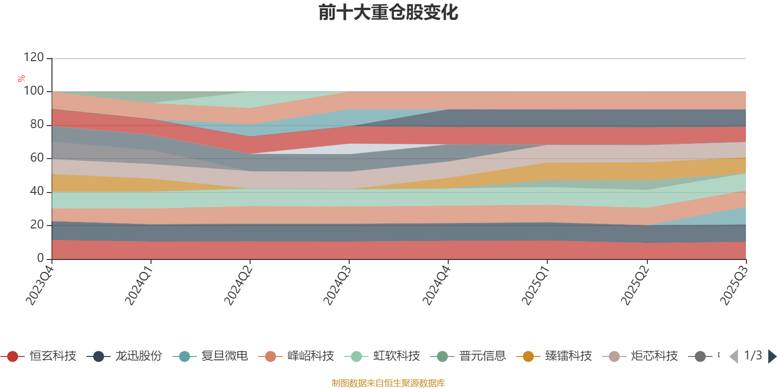 该基金持股集中度较高,且持股标的较为稳定,近2年前十大重仓股集中度长期超过60%。截至2025年三季度末,基金十大重仓股分别是复旦微电、裕太微、合合信息、龙迅股份、恒玄科技、虹软科技、峰岹科技、臻镭科技、炬芯科技、芯动联科。