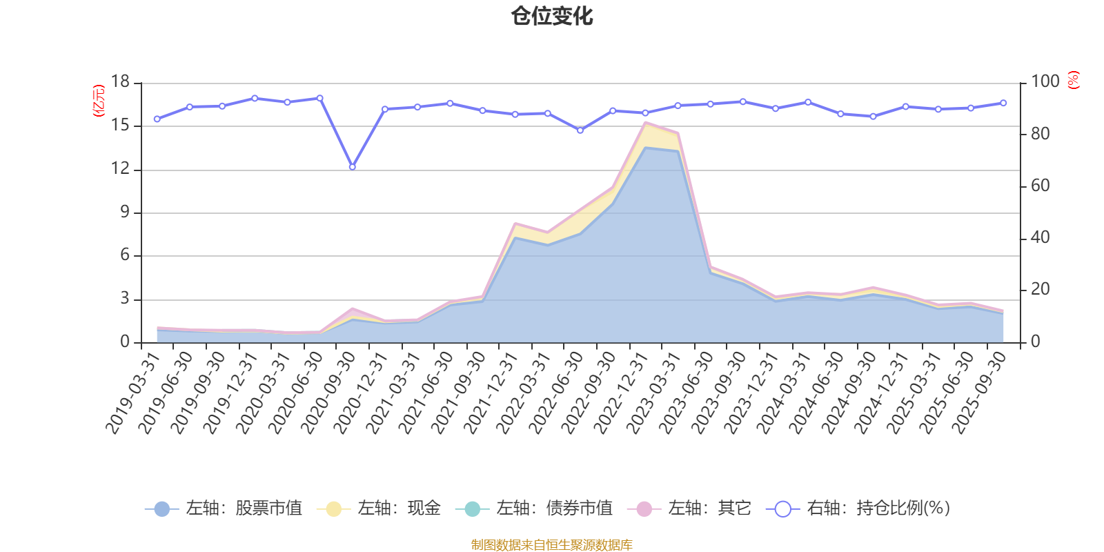 据定期报告数据统计,近三年平均股票仓位为90.43%,同类平均为85.44%。2020年上半年末基金达到94.1%的最高仓位,2020年三季度末最低,为67.62%。