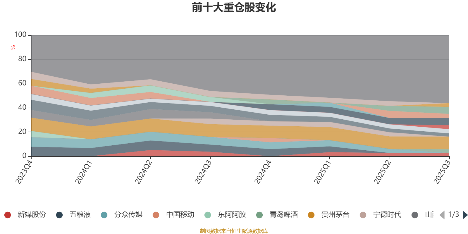 截至2025年三季度末,基金十大重仓股分别是贵州茅台、京沪高铁、国药股份、华鲁恒升、广信股份、华峰化学、洽洽食品、青岛啤酒、新媒股份、马应龙。