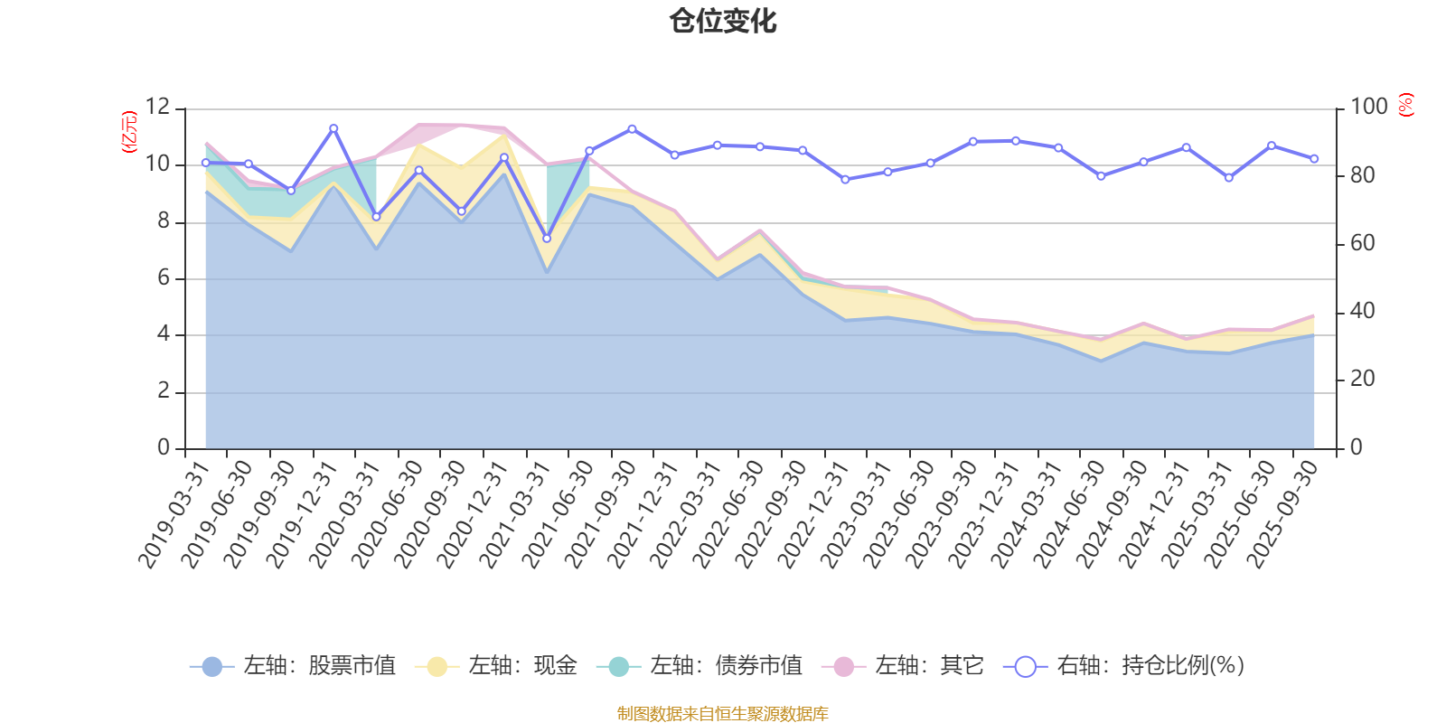 据定期报告数据统计,近三年平均股票仓位为85.05%,同类平均为72.12%。2019年末基金达到94.15%的最高仓位,2021年一季度末最低,为61.8%。