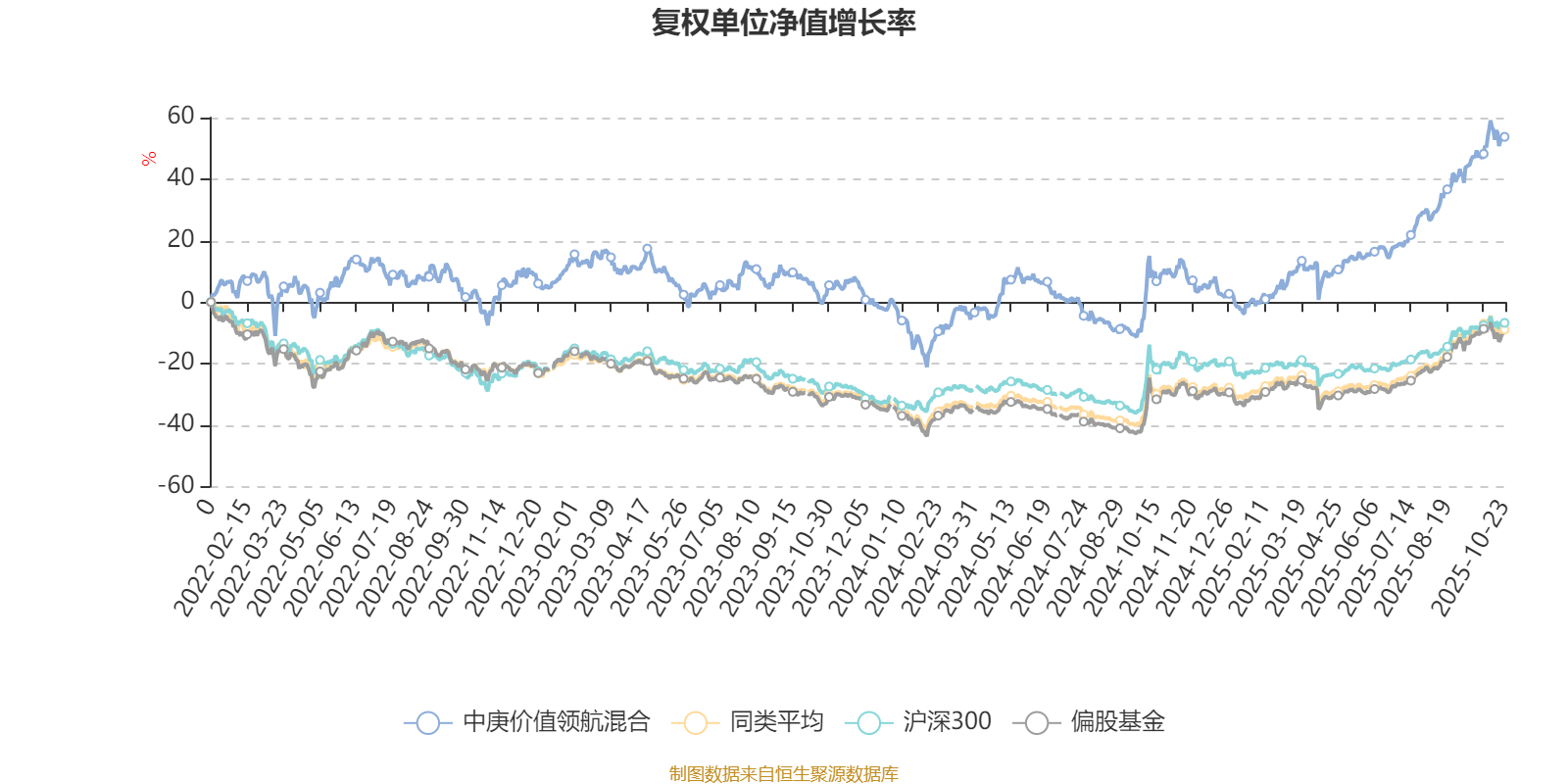 截至10月23日,中庚价值领航混合近三个月复权单位净值增长率为19.95%,位于同类可比基金37/130;近半年复权单位净值增长率为39.02%,位于同类可比基金27/130;近一年复权单位净值增长率为38.93%,位于同类可比基金27/130;近三年复权单位净值增长率为52.08%,位于同类可比基金16/124。