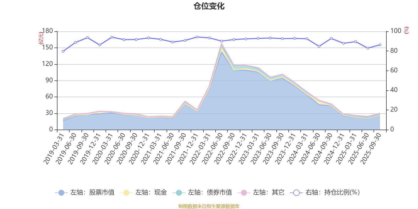 据定期报告数据统计,近三年平均股票仓位为90.05%,同类平均为85.95%。2021年末基金达到94.28%的最高仓位,2019年一季度末最低,为79.73%。