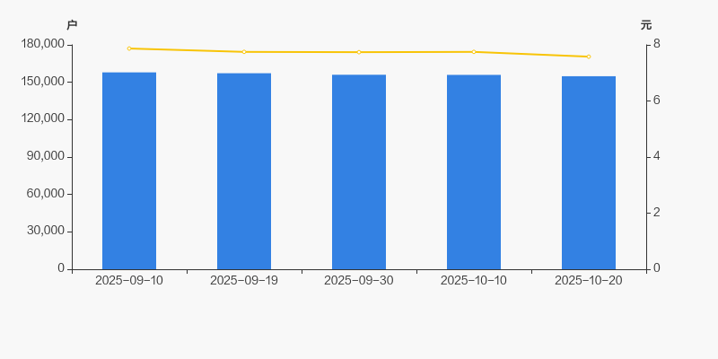 截至2025年10月20日,公司最新总股本为15.98亿股,其中流通股本为15.88亿股。户均持有流通股数量由上期的1.02万股上升至1.03万股,户均流通市值7.77万元。