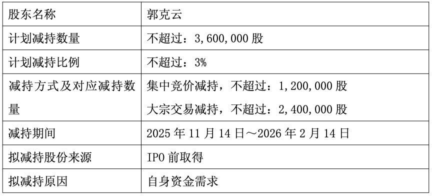 据云路股份2025年半年报,郭克云为公司第三大股东,也是云路股份上市的发起人之一。按照云路股份当前股价105.01元/股粗略计算,郭克云此次减持或将套现约3.8亿元。