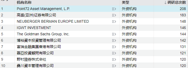 除了老虎太平洋,Point72、高盛、路博迈、野村等外资巨头今年以来也频频现身A股上市公司调研名单。