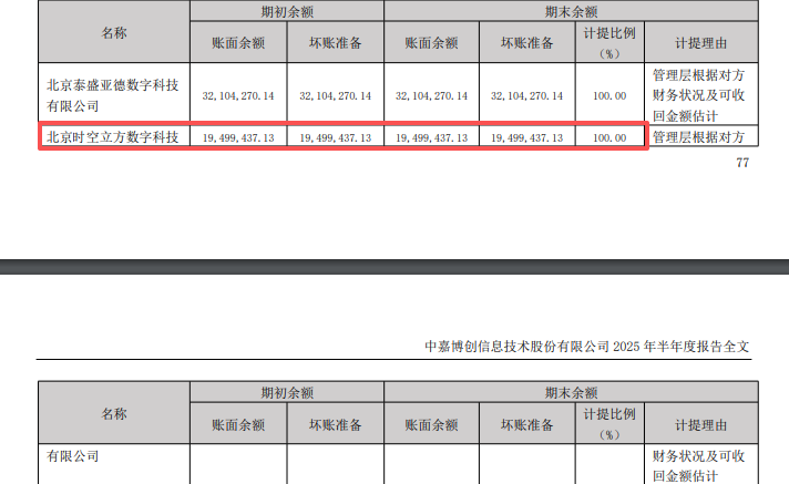 对熟悉中嘉博创近年财报的投资者来说,时空立方并不陌生——这家企业常年出现在中嘉博创的坏账名单中。