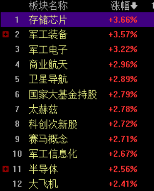 盘面上看,存储芯片、军工装备、商业航天等板块涨幅居前。个股方面,普冉股份涨停,香农芯创涨超17%再创新高。