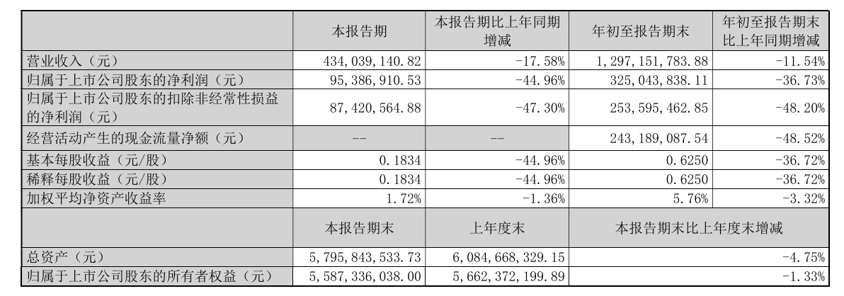 第三季度单季,敷尔佳实现营业收入4.34亿元,同比下滑17.58%;归属于上市公司股东的净利润9538.69万元,同比下降44.96%。