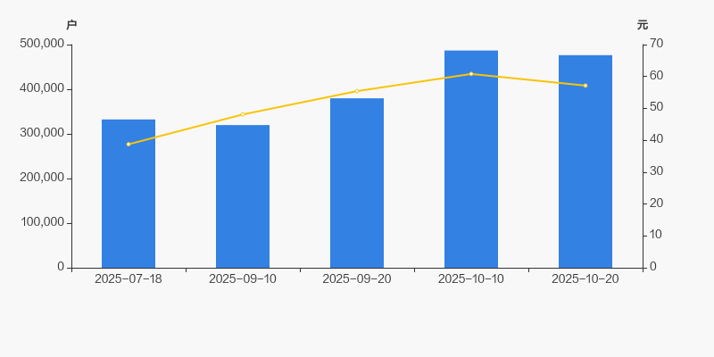 2025年7月18日至今,公司股东户数显著增长,区间涨幅为43.34%。2025年7月18日至2025年10月20日区间股价上涨47.56%。