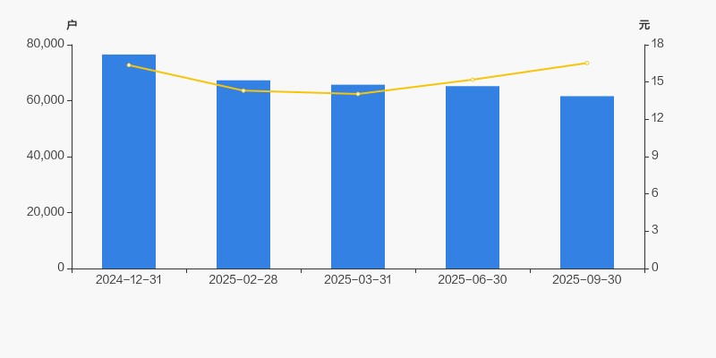 截至2025年9月30日,公司最新总股本为10.61亿股,且均为流通股。户均持有流通股数量由上期的1.63万股上升至1.72万股,户均流通市值28.53万元。